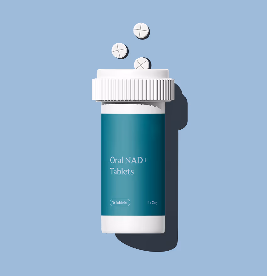 NAD+ (nicotinamide adenine dinucleotide) is a coenzyme found naturally in the body. It plays a role in normal cellular processes, including energy production and metabolic function. NAD+ levels naturally change with age and lifestyle factors, which has been linked to fatigue, cognitive slowdown, and metabolic inefficiencies.