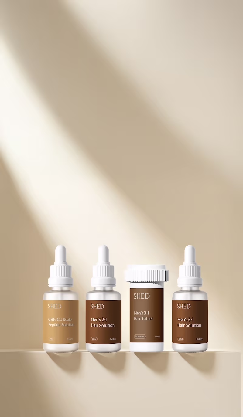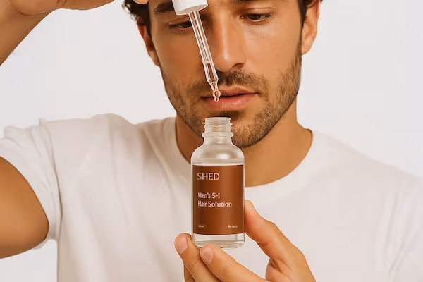 "Using Shed for managing my hair loss has been better than expected. I've been using their 5 in 1 serum and it's been an easy routine for me to adopt each night. It's always been hard to manage my receding hair line but so far it's reduced my hair loss and I'm not starting to see some hair regrowth!"