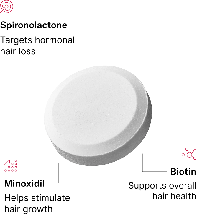 Women’s hair thinning isn’t just a cosmetic concern. In many cases, it’s a medical one, influenced by aging, hormonal changes, or periods of stress. The Women’s 3-In-1 Hair Tablet is prescribed by a licensed provider and formulated to support scalp health and address underlying contributors to hair thinning, all in one simple daily routine.